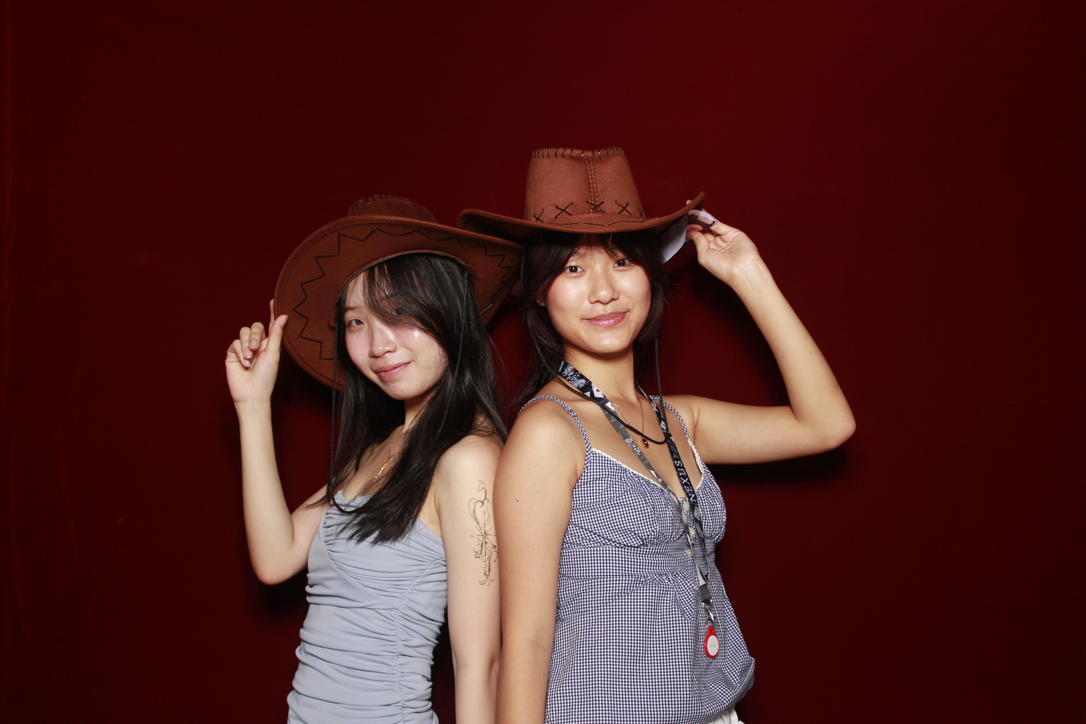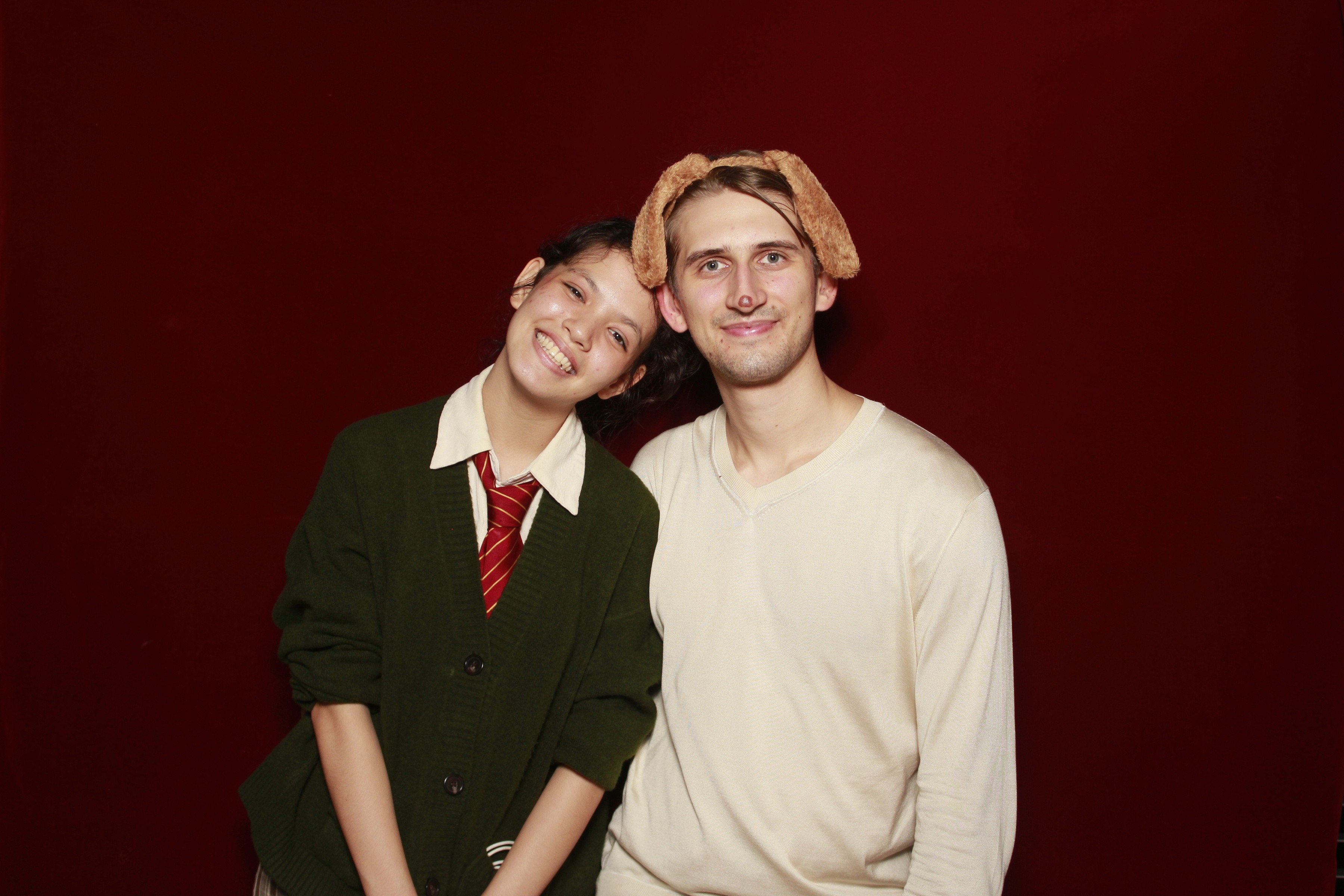This setup used a dark red backdrop and a flash lighting system to keep photos evenly lit throughout the event, regardless of ambient lighting or costumes.